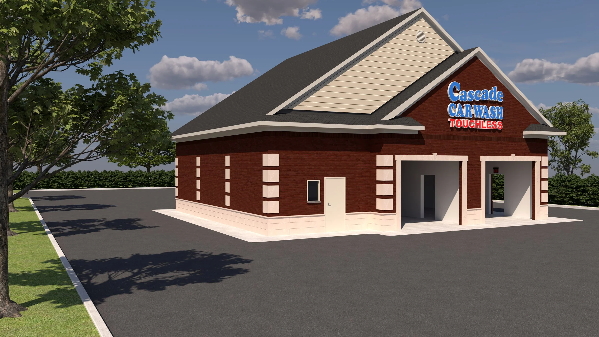 This building visualization was created for Cascade Carwash LLC for their new location in Fairfield, Ohio. This location meets the aesthetic criteria of the Overlay John Gray/Pleasant Overlay District and the